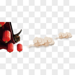 唯美中国风屋角灯笼祥云边角装饰