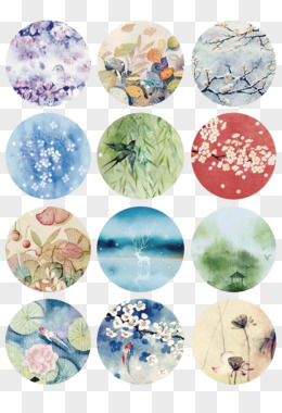 彩色唯美水墨装饰图案