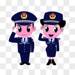 卡通手绘警察叔叔帮助小女孩过马路免抠元素