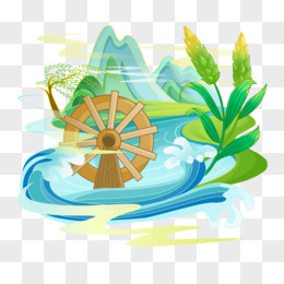 手绘麦穗水车微景观插画元素