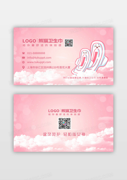 粉色卡通创意温馨云彩卫生巾宣传名片