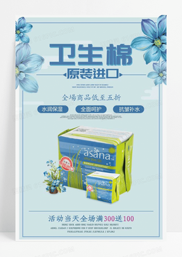 简洁少女卫生巾促销海报清新卫生棉海报卫生巾促销海报图片