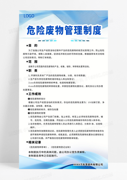 简约大气科技蓝色危险废物管理责任制度公示海报