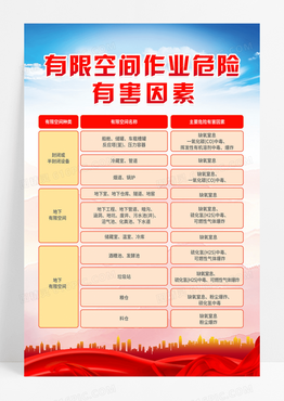 简约蓝色有限空间作业危险有害因素安全生产海报设计