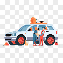 扁平插画汽车维修免抠元素