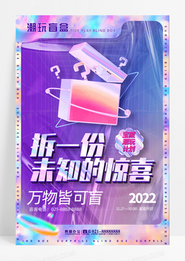 紫色炫彩拆一份未知的惊喜潮玩计划宝藏盲盒海报