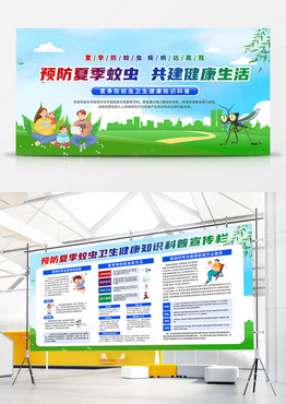 卡通夏季防蚊虫登革热疾病健康医疗宣传科普知识宣传栏展板
