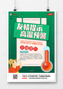 高温预警卡通风简约时尚纯色海报