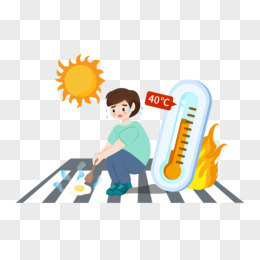 卡通矢量创意高温在马路上煎荷包蛋插画素材