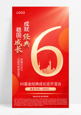 红色金属成就经典稳固成长周年庆手机宣传海报