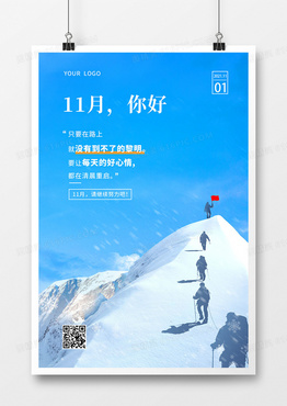 11月你好创意朋友圈打卡摄影合成海报