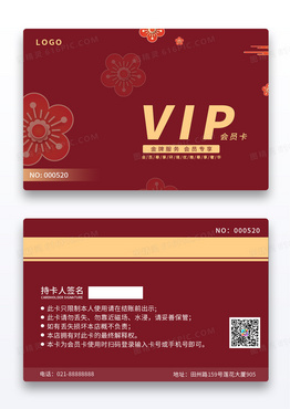 红色美丽花国潮纹高端餐厅会员卡金色vip消费享优惠餐饮会员卡