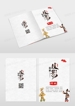 白色祥云底纹简约艺术风皮影传统文化画册封面模版