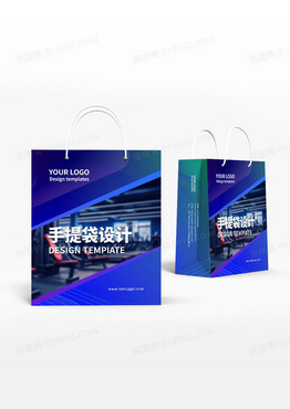 简约蓝色健身房企业文件袋礼品袋手提袋设计