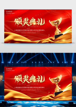 大气红色渐变绚丽纹理颁奖表彰大会年会宣传展板