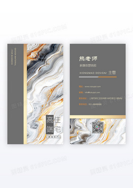 灰色简约大理石纹路商务竖版名片设计