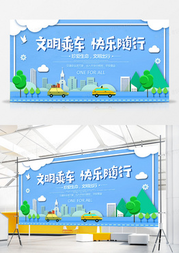 简约大气文明出行快乐随行宣传展板