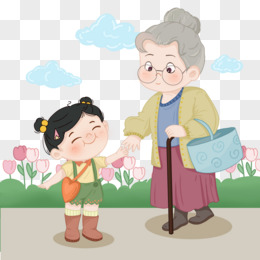卡通文明礼仪女孩搀扶老人免抠元素