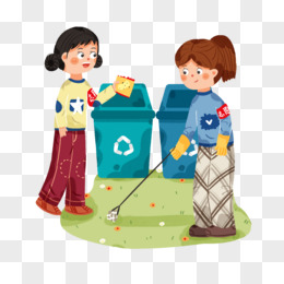 一组卡通手绘保护环境垃圾分类场景系列三免抠元素