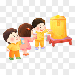 手绘小朋友排队接水元素