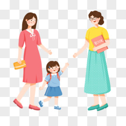 手绘家长送孩子上学跟老师打招呼免抠素材