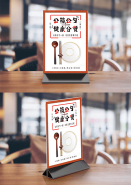 蓝色背景文明用餐公勺公筷文字健康桌签公筷公勺桌签