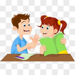 卡通风开学季两个小学生在课桌上讨论问题免抠元素
