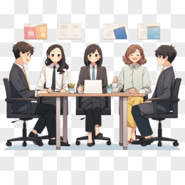 手绘卡通职场会议两人对话等场景元素