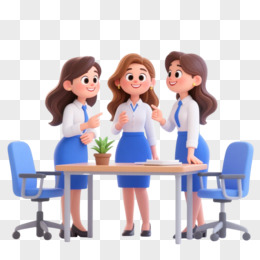 卡通立体风办公人员讨论问题开会免抠元素