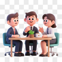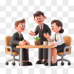 3D卡通立体风办公人员讨论问题开会免抠元素