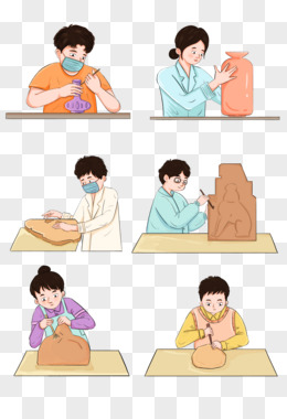 一组卡通考古人员修复破损各类文物套图系列三素材