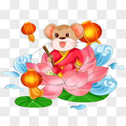 新年鼠打灯笼坐河灯庆新春素材