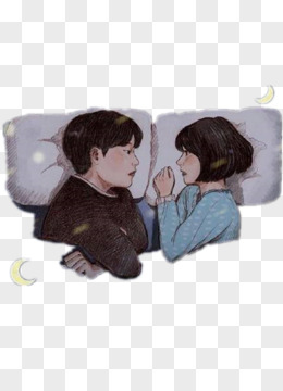 手绘卡通穿冬装拥抱的情侣插画免抠元素