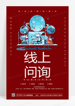红色质感背景线上问诊线上医疗在线问诊