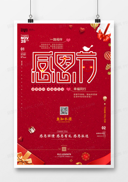 红色感恩节文字创意海报