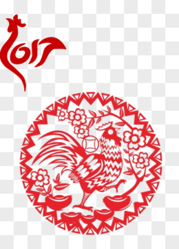 剪纸红色公鸡17年背景