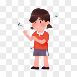 手绘卡通夏天女生被蚊虫叮咬免抠素材