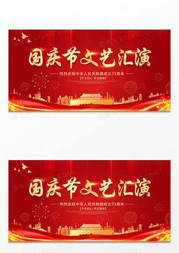 红色国庆节国庆举国同庆盛世中华国庆73周年展板国庆文艺汇演