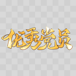 优秀党员金色手写字体设计