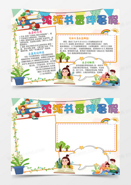 粉色简约浓浓书香伴暑假手抄报我的暑假生活电子小报模板暑假阅读