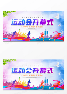 紫色渐变我运动我快乐运动会开幕式校园运动会展板设计