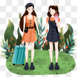 两个女孩毕业季出行旅游坐在行李箱上元素