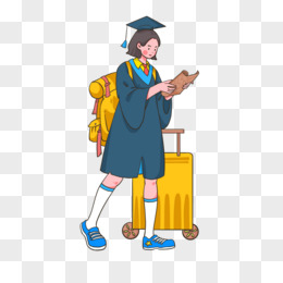 卡通手绘女孩拉着行李箱去旅行免抠元素