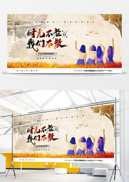 复古简约时光不老我们不散同学聚会宣传展板设计