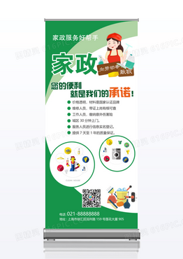 绿色风格小蜜蜂家政服务易拉宝x展架宣传