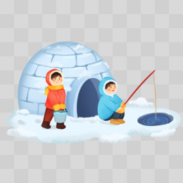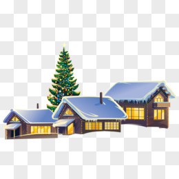 矢量冬天下雪雪花农村小村庄场景免抠卡通元素