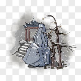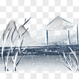 手绘水墨风雪景素材