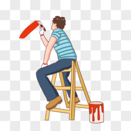 手绘男士墙面刷漆刷墙头素材