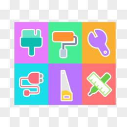 一组彩色扁平卡通装修道具图标元素