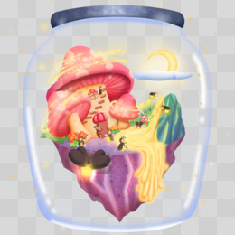 手绘梦幻风童话小屋素材